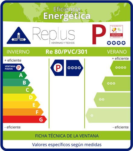 Ventana Replus Passiv, con una dimensión en marco de 80 mm y 7 cámaras de aislamiento. Esta ventana ha obtenido el certificado como producto Passiv Haus, por el Passiv Haus Intitute Alemán, con una prestaciones de hasta Uw0.74, por lo que es una de las ventanas más aislantes térmicamente disponibles, tanto para el verano como para el invierno.