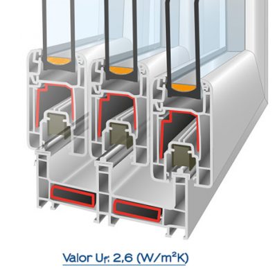 • Térmico: Nuestras ventanas permiten la incorporación de un triple vidrio con doble cámara que incorpora un tratamiento de control solar y baja emisividad.